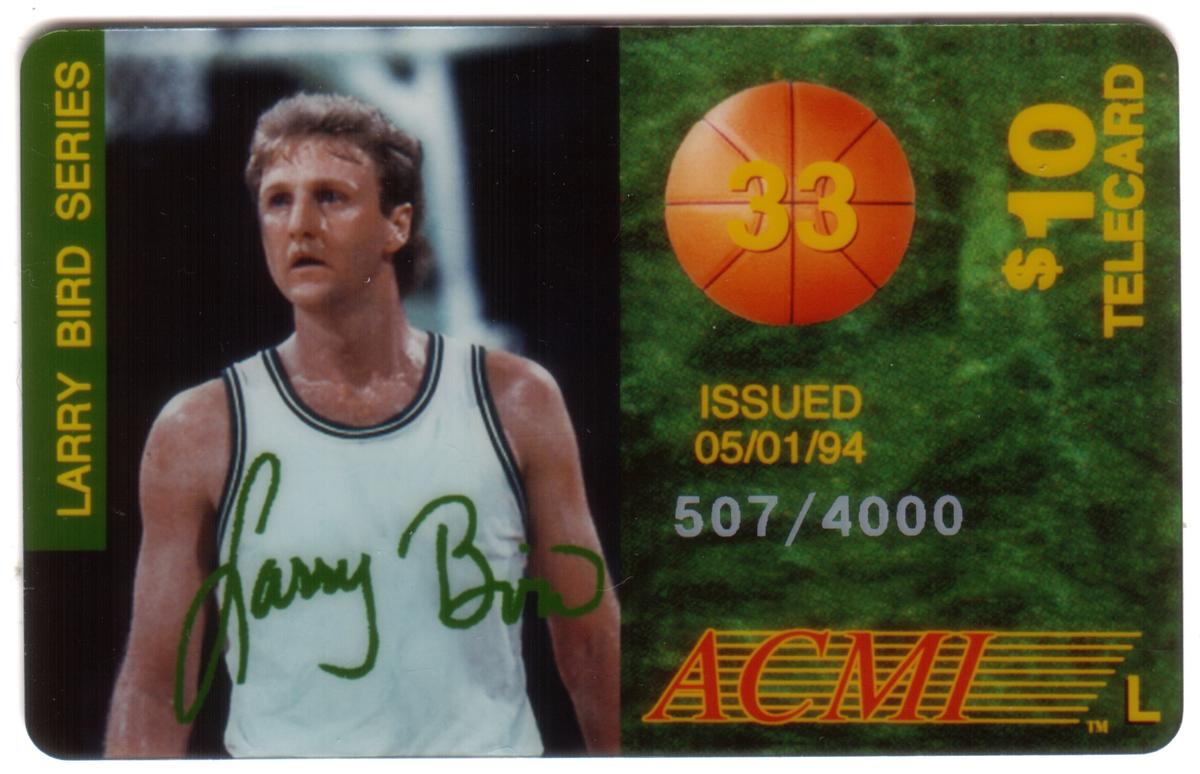 This item is categorized under ACMI and is part of a specialized basketball card series. The card does not contain any extraneous imagery unrelated to the sport or player. The focus is solely on Larry Bird and his connection to the Boston Celtics and the NBA. The date of issue and unique series numbering add to the card’s authenticity and appeal to collectors familiar with 1990s basketball memorabilia.