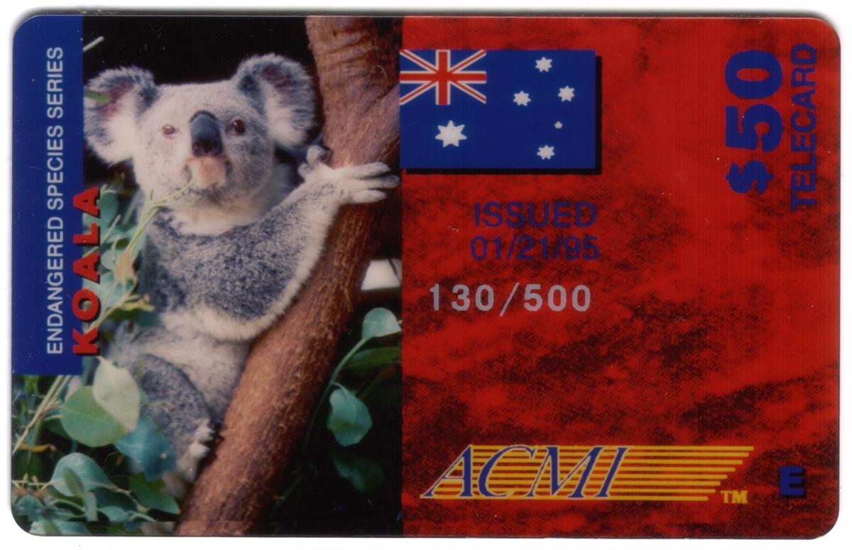 The Australian national flag is prominently displayed on the card, linking the wildlife theme to its country of origin. The design includes the denomination of $50, indicating the card’s value. The card also bears the ACMI logo, which refers to the Australian Centre for the Moving Image, suggesting an official or licensed association.