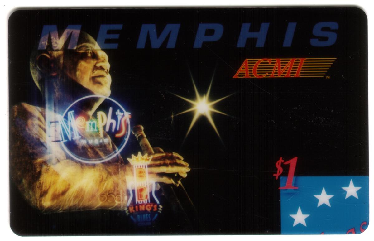 The first card highlights Memphis with a photographic image of the legendary blues musician B.B. King. King is shown holding a microphone, and the card has the word "MEMPHIS" in bold letters across the top. A neon-style emblem including the words "Memphis" and "BB King's" is visible, emphasizing the musical heritage of the city.