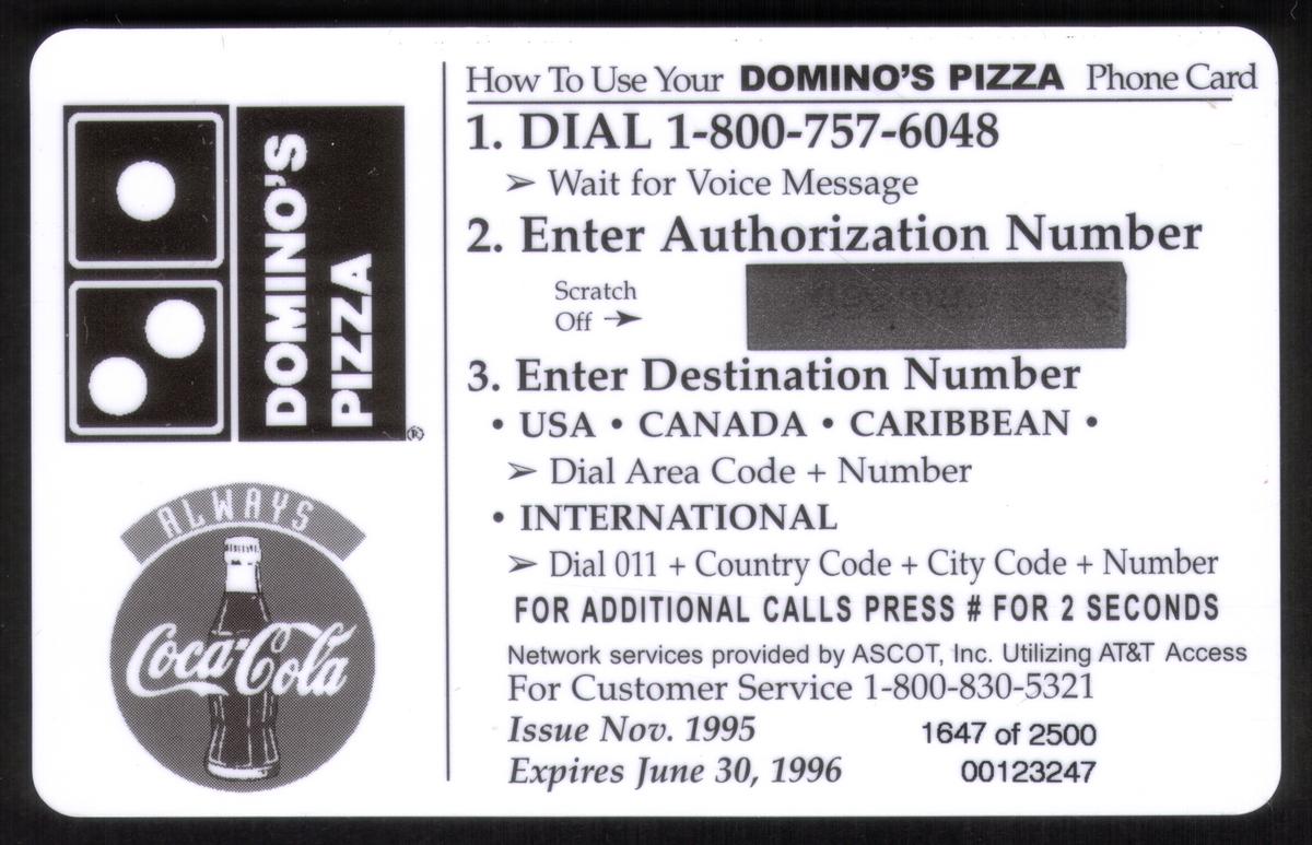 Mid-1990s Domino''s Pizza and Coca-Cola collaboration set featuring promotional phone cards, vintage design, collectible appeal, and brand nostalgia.