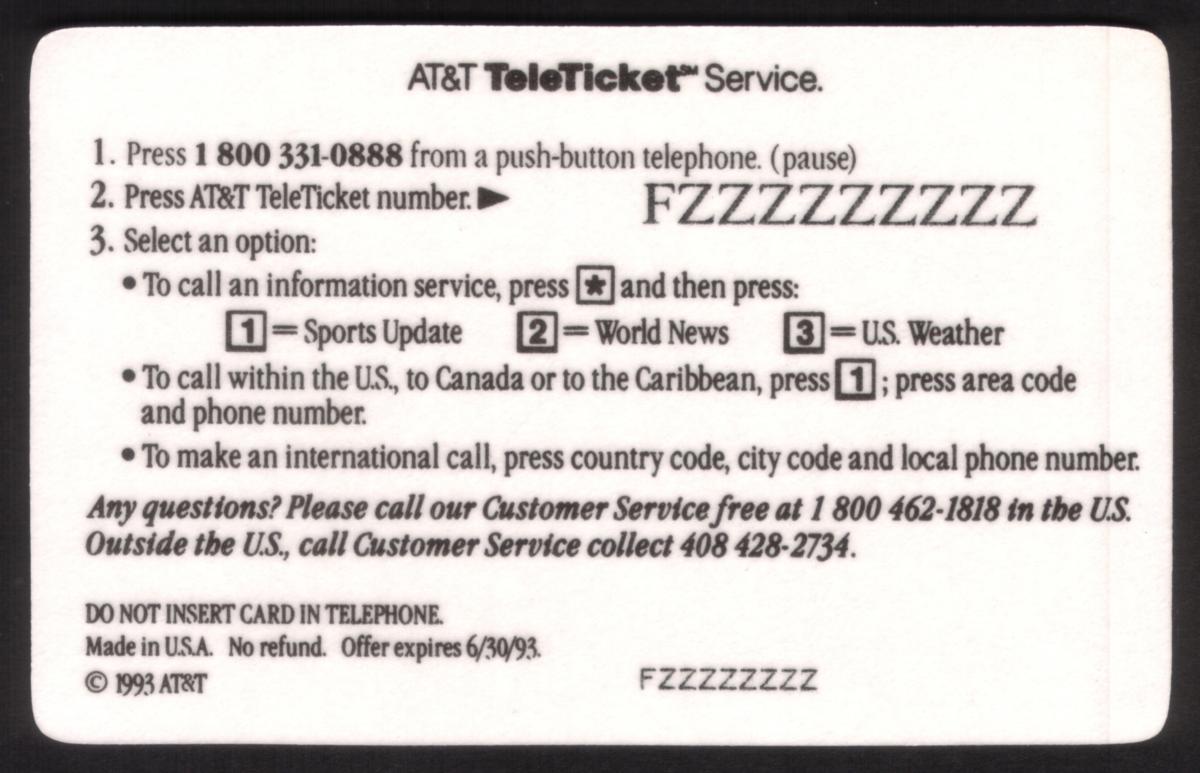 Since we have the world's largest inventory of USA phonecards for collectors, you will not necessarily receive the identical serial/batch/PIN number that we have scanned/pictured.