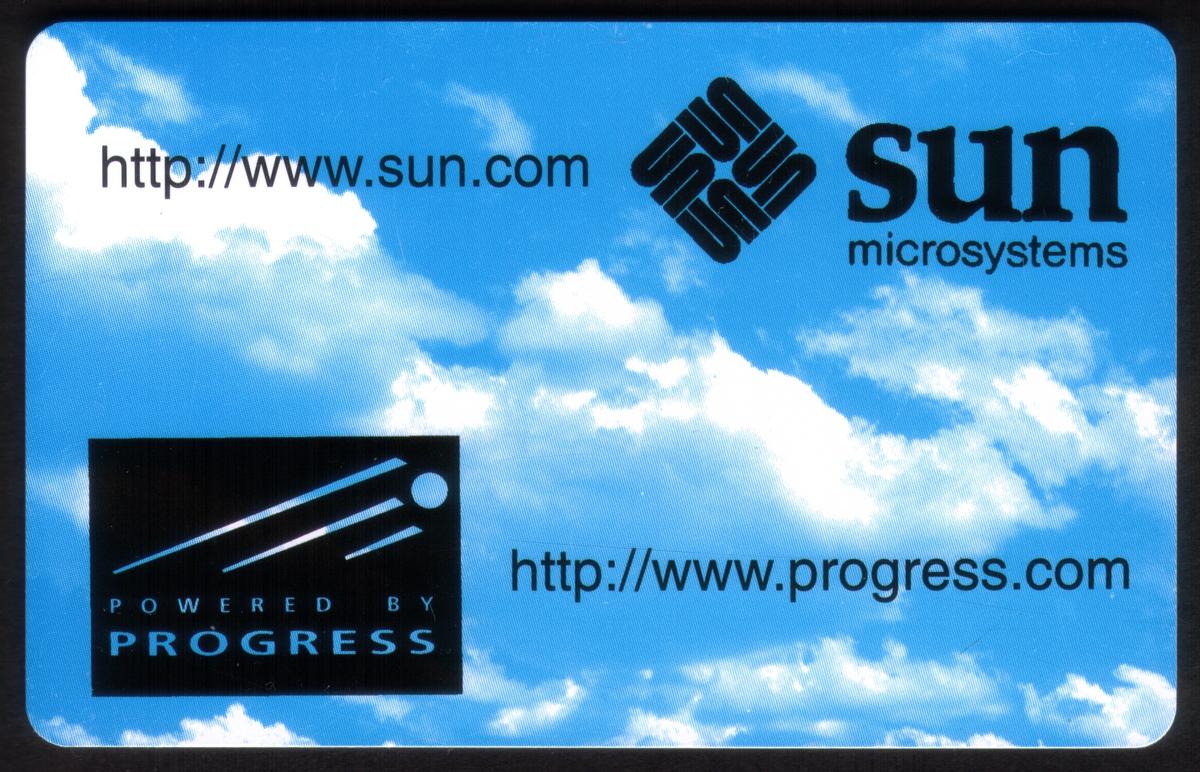 This card is related to the technology sector, specifically referencing Sun Microsystems, a well-known technology company. The imagery and text connect to corporate communication and progress within the field of computers and technology.