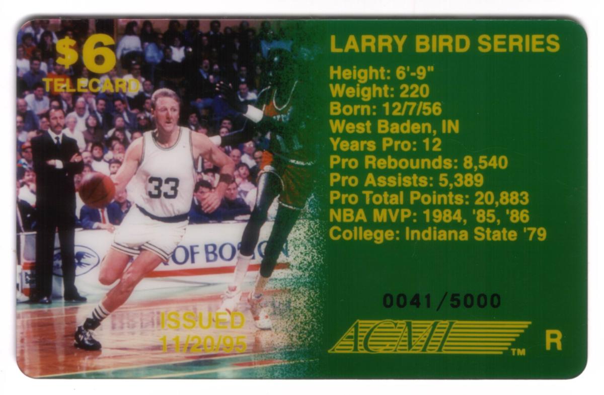 This card is part of the ACMI collection, a brand known for producing sports cards and memorabilia. The card’s clear presentation of Larry Bird alongside the Boston Celtics and NBA naming makes it a valuable item for basketball collectors and fans of the sport’s history.