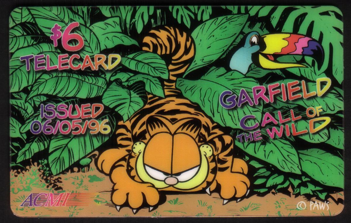 There is branding for ACMI present on the card, indicating its production or licensing affiliation. The card clearly highlights Garfield as the central figure amid a charming setting populated by both forest animals and birds, making it an appealing collectible for fans of cartoons and animation.