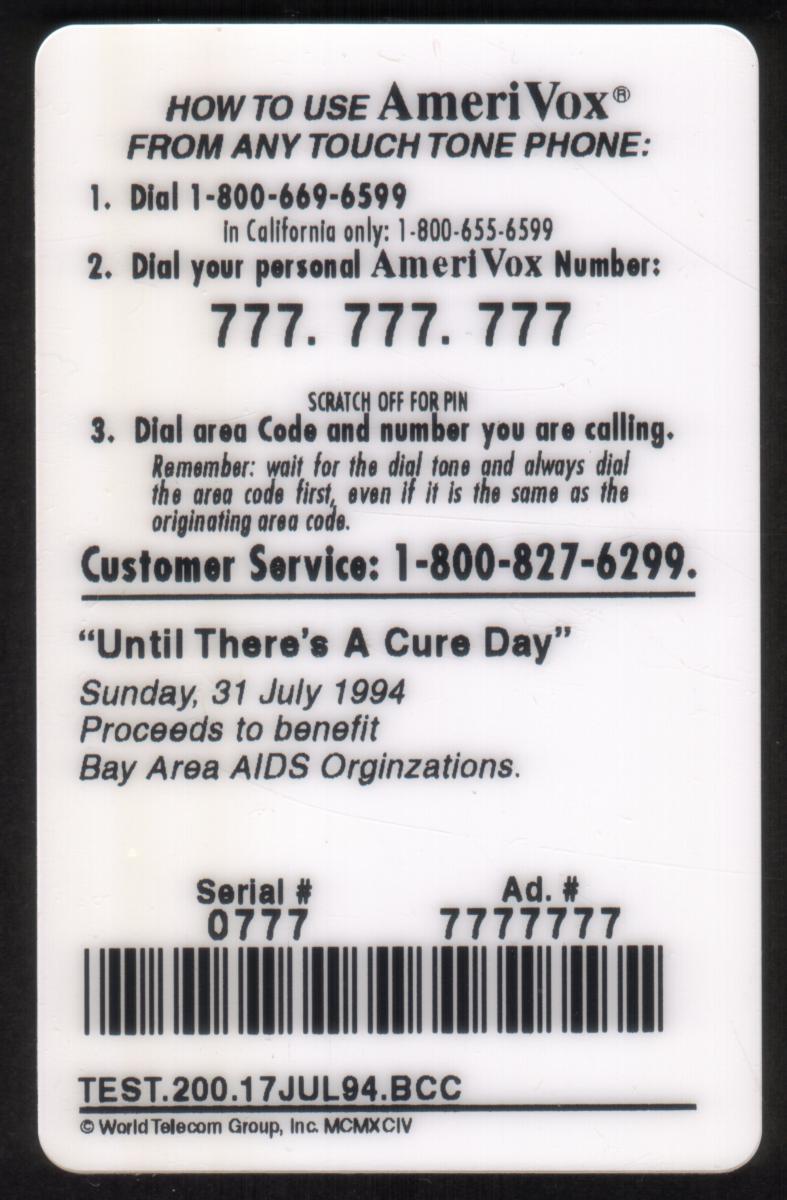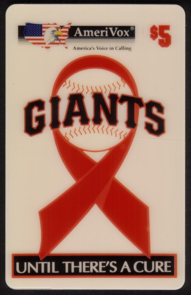 This phone card, issued in July 1994, is connected to Bay Area AIDS awareness efforts and Major League Baseball, specifically highlighting the San Francisco Giants. It serves both as a collectible item and a symbol for support and awareness of the HIV/AIDS epidemic.
