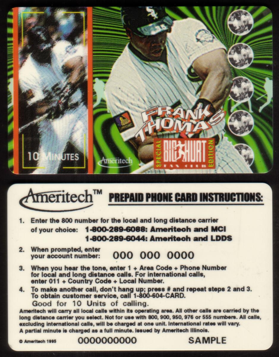 Prominently displayed near the center of the card is the name "Frank Thomas" in bold white and orange letters. Below the name is the special edition label "Big Hurt," accompanied by "Special Edition" in yellow text on an orange background, emphasizing Thomas’s nickname. The card is associated with Ameritech, whose logo is located near the bottom left.