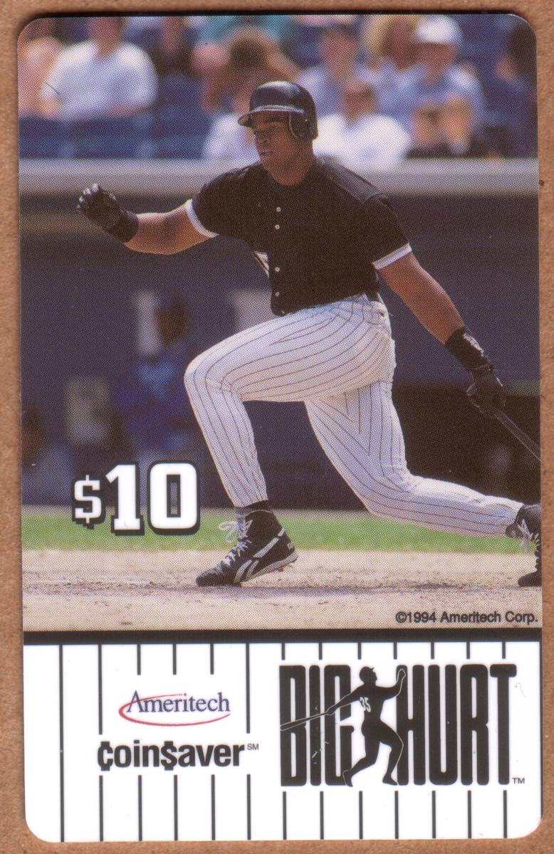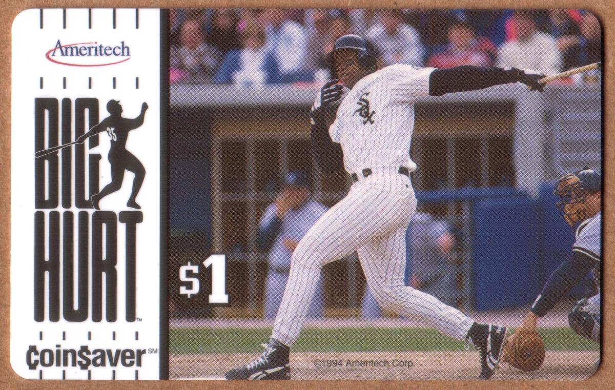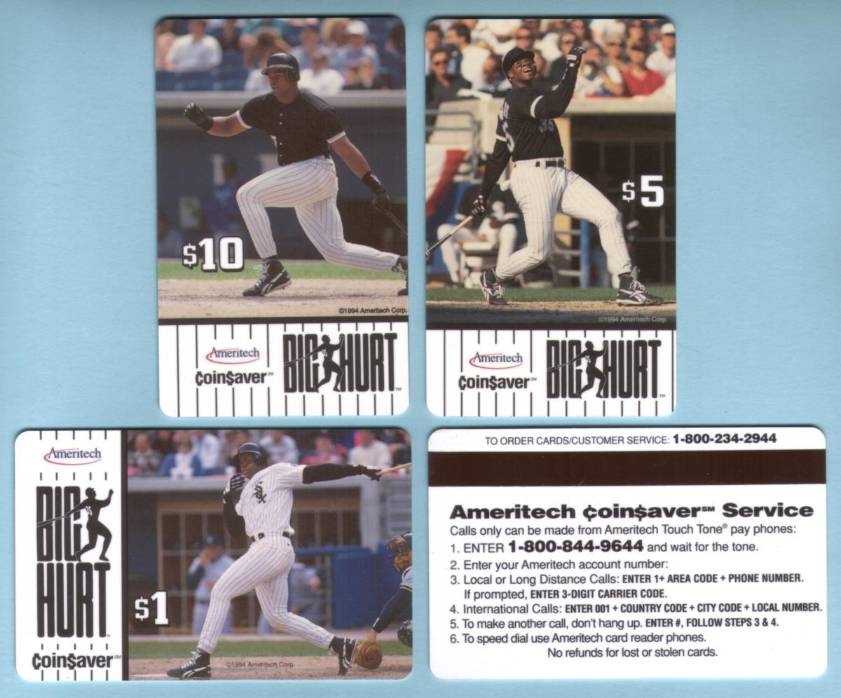 Set of 1994 Ameritech Coin$aver phone cards featuring Frank Thomas in action, showcasing his power, focus, and iconic White Sox moments.