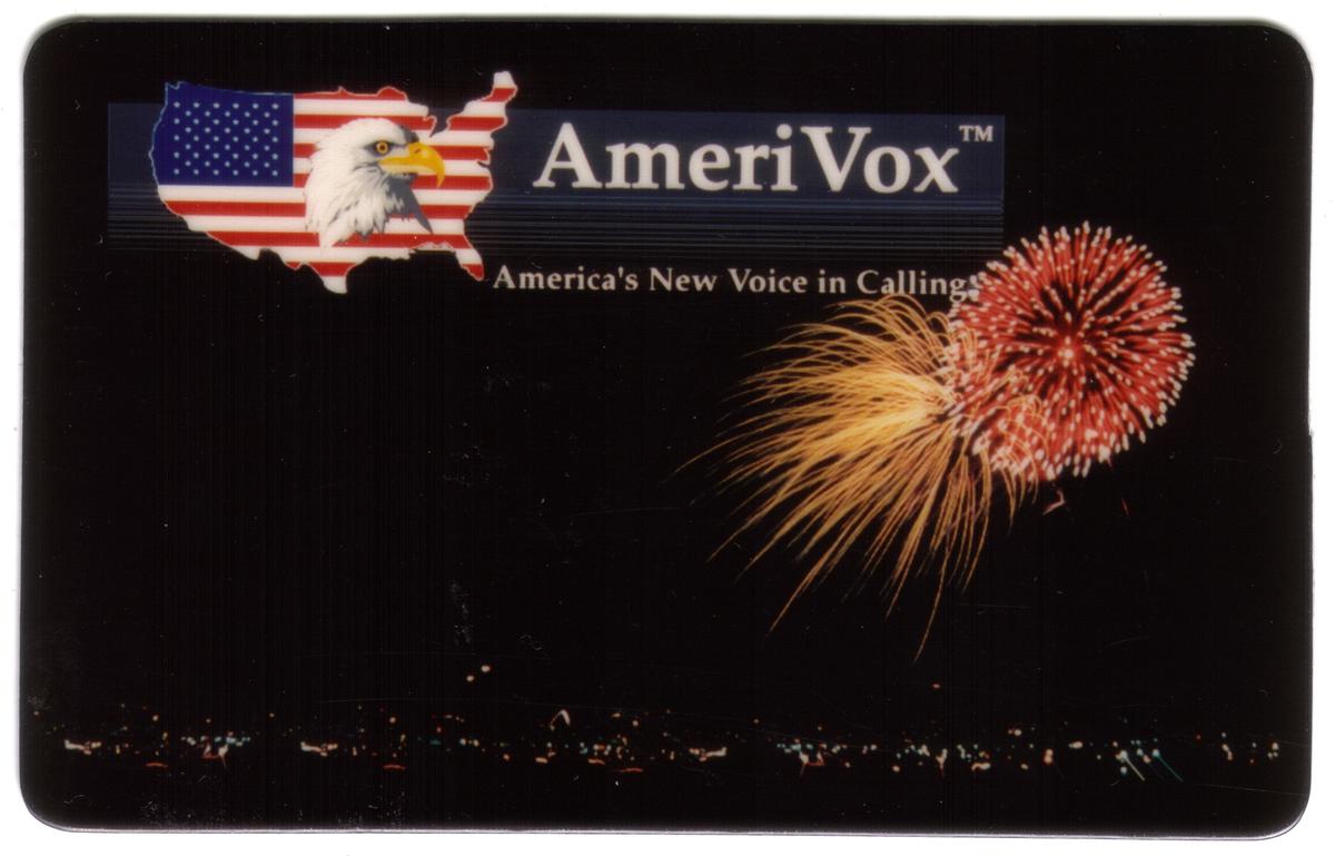 Patriotic Washington DC fireworks scene with eagle logo, $10/$100 denomination, celebrating American pride and early 90s telecommunications.