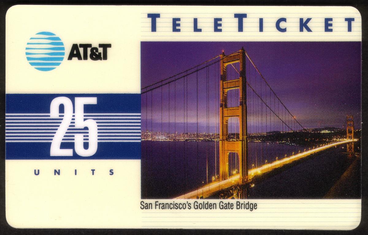 The card is associated with AT&T Teleticket and is labeled as Group 3 with a denomination of 25 units (25u). French language text appears on the card, indicating its intended market or user base includes French speakers. The overall design emphasizes Americana and structures, specifically highlighting one of San Francisco’s most recognizable landmarks.