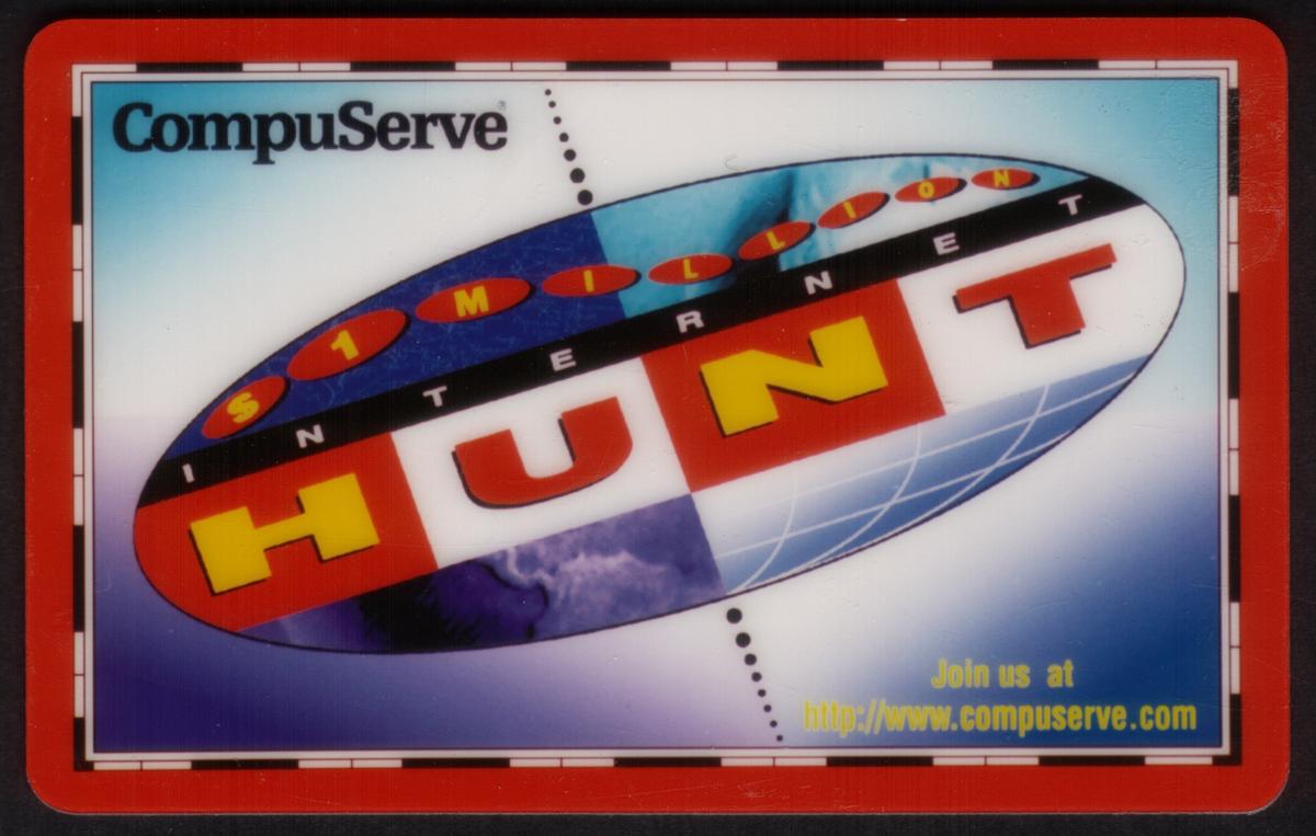 This collectible promotional phone card is related to the 10u CompuServe $1 Million Internet Hunt, a contest involving Internet Service Providers and information technology themes. The card features a globe design with Earth imagery, emphasizing a world and internet theme. The logos and textual elements identify HT Technologies, a company associated with the Internet and IT sectors, aligning with the promotional purpose of the card.