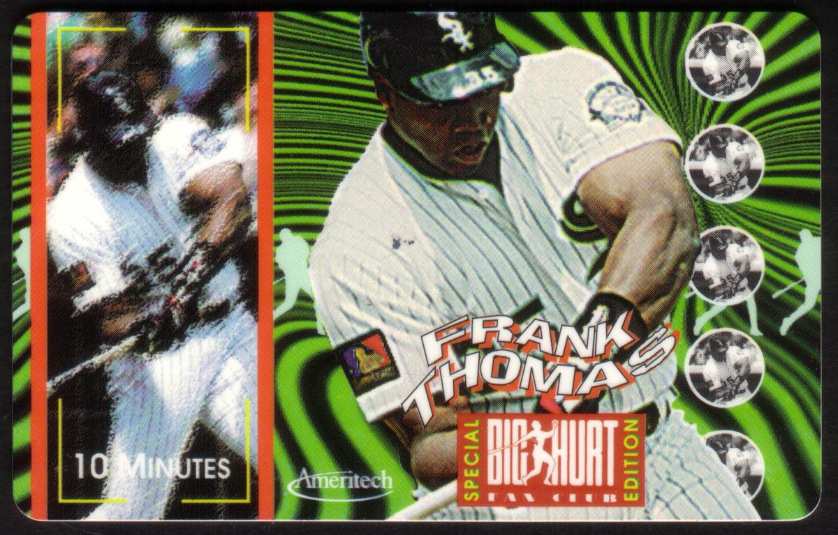 This phone card is part of a sports-themed series and caters specifically to fans of baseball and Frank Thomas in particular. Its use as a collectible item is enhanced by the visual focus on the player and the clear, bold text drawing attention to the special edition status of the fan club card.