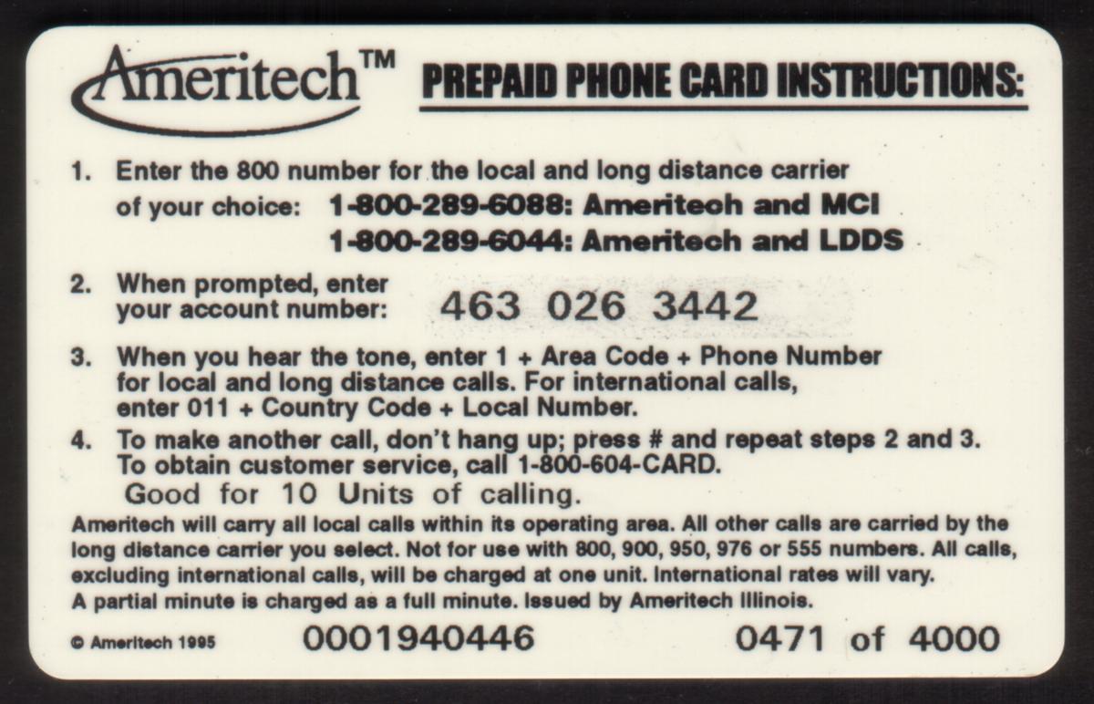 Since we have the world's largest inventory of USA phonecards for collectors, you will not necessarily receive the identical serial/batch/PIN number that we have scanned/pictured.