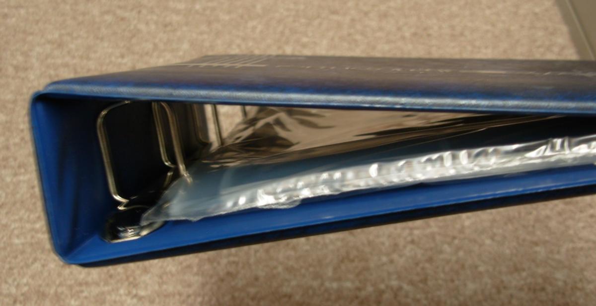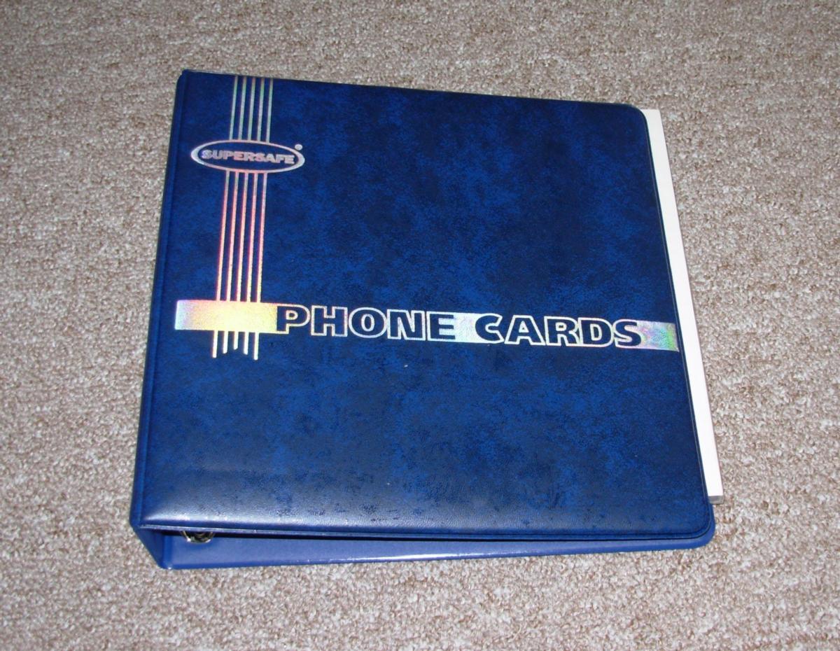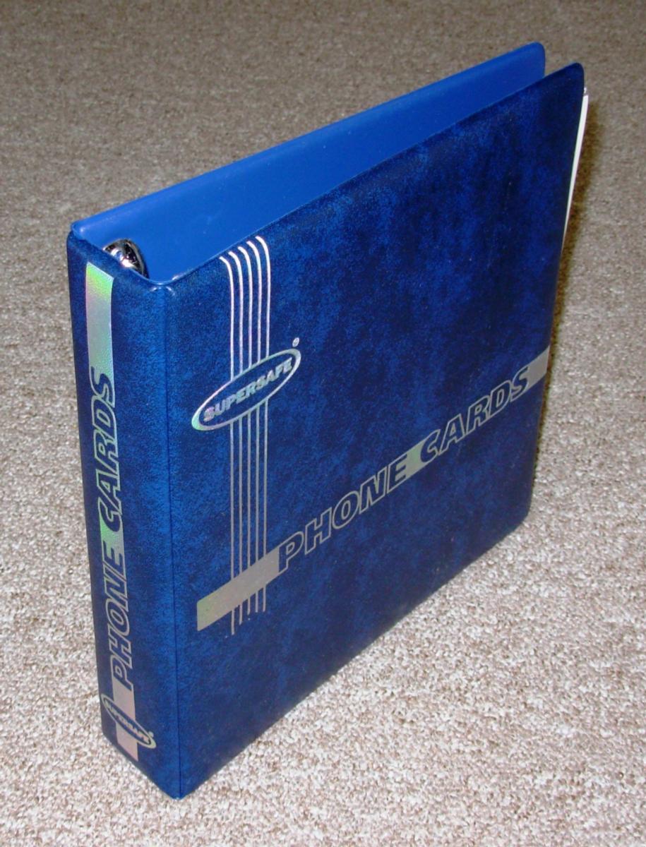 The overall design is simple and functional, suited for collectors who want to store and organize their phone card collections conveniently in a two-inch binder format. The silver writing adds a professional touch to the blue binder cover.