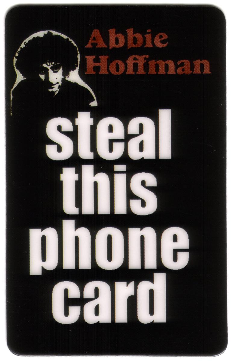 This collectible phone card features a vibrant image associated with Andrew Hoffman and the activism movement of the 1960s. The card prominently displays the phrase "Steal This Phone Card," directly referencing the activism spirit symbolized by Abbie Hoffman, a well-known political and social revolutionary figure from that era. The card is signed by Andy Hoffman, Abbie Hoffman’s son, adding a personal and historical significance to the item. The design includes thematic elements that evoke the counterculture, protests, and social revolution movements of the 1960s.