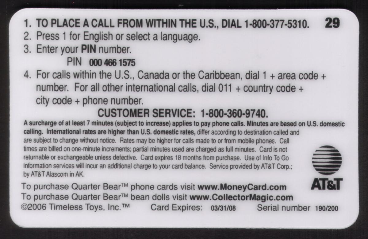 Since we have the world's largest inventory of USA phonecards for collectors, you will not necessarily receive the identical serial/batch/PIN number that we have scanned/pictured.
