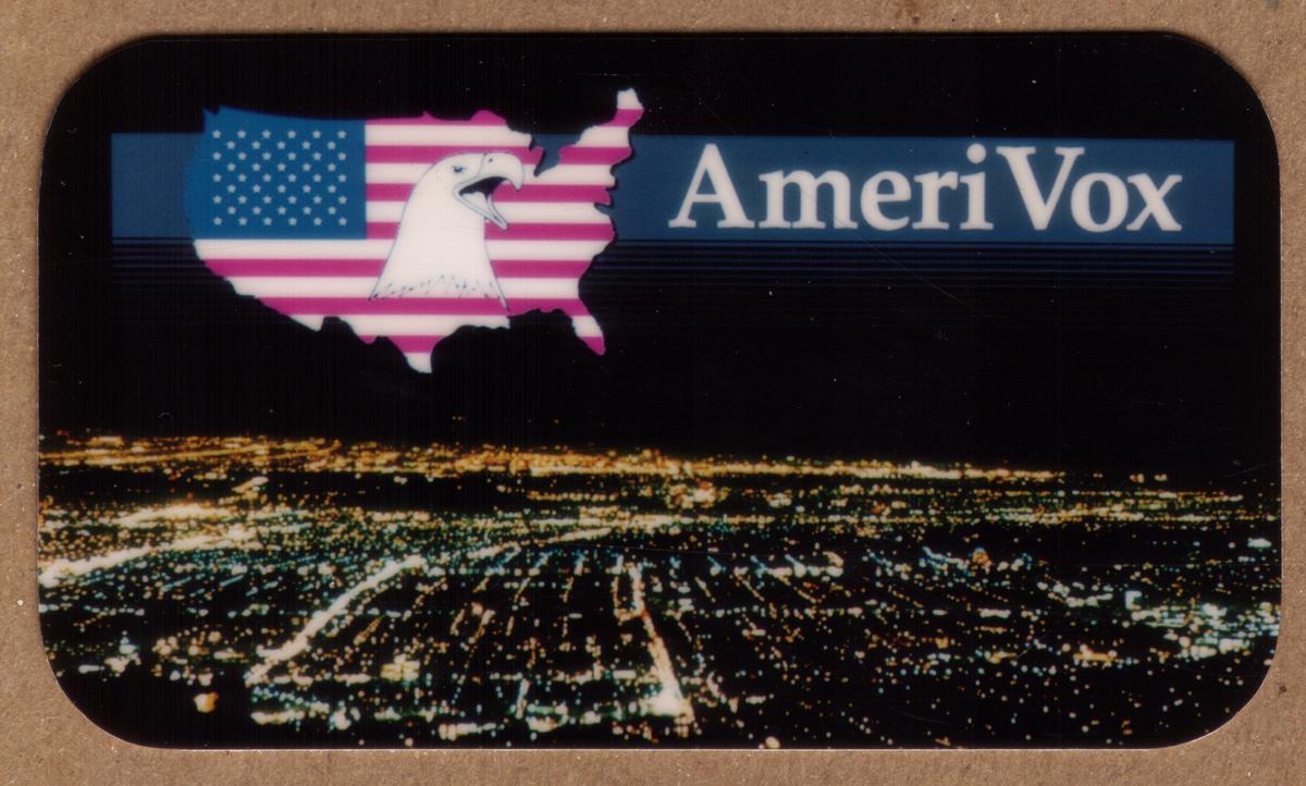 Text on the card includes "LOS ANGELES CALIFORNIA" prominently displayed in white and yellow lettering. The card references the "Screaming Eagle" and “1992 BC $10./$100.” It is part of a monument series themed around sightseeing, historical landmarks, American History, Americana, and architecture. The issuer name "AmeriVox" appears on the card, indicating the company responsible for its production.