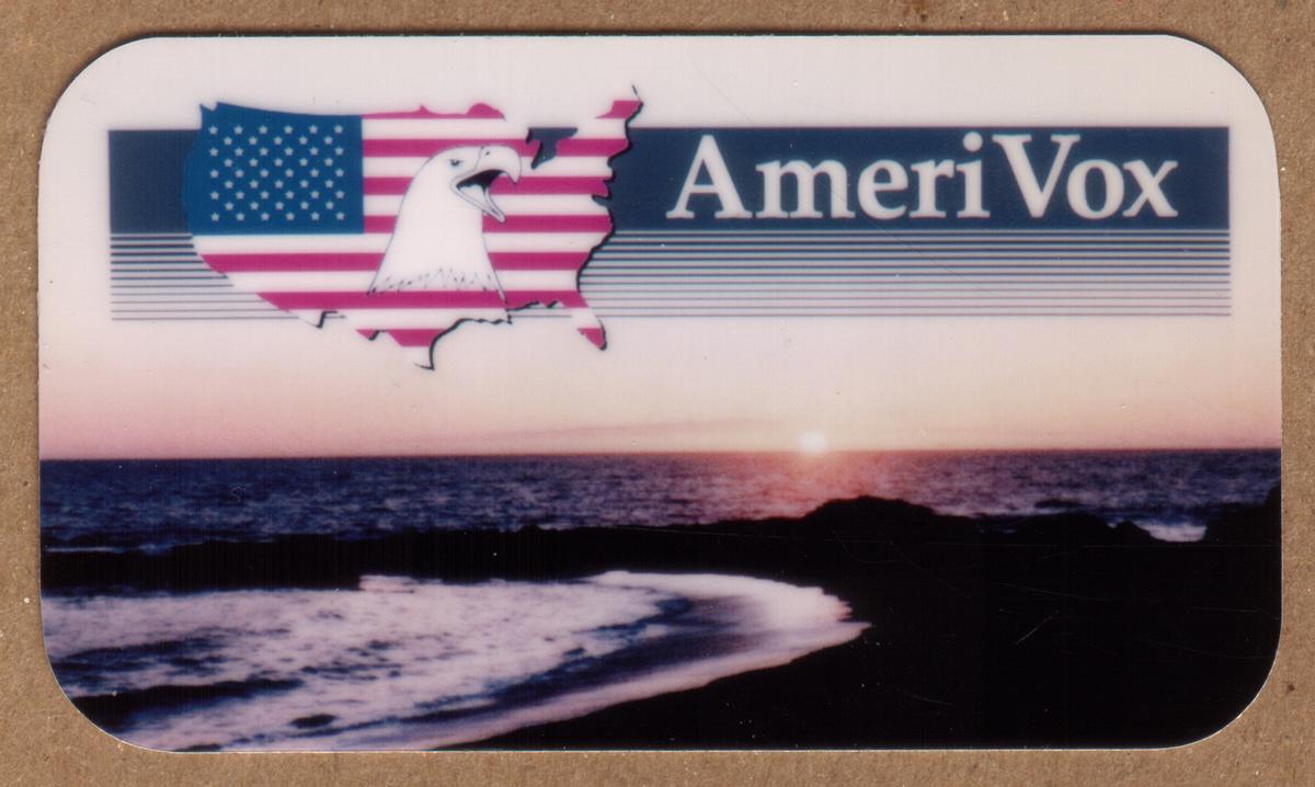 1992 AmeriVox phone card featuring a serene ocean sunset scene with patriotic logo, blending natural beauty and American pride in collectible memorabilia.