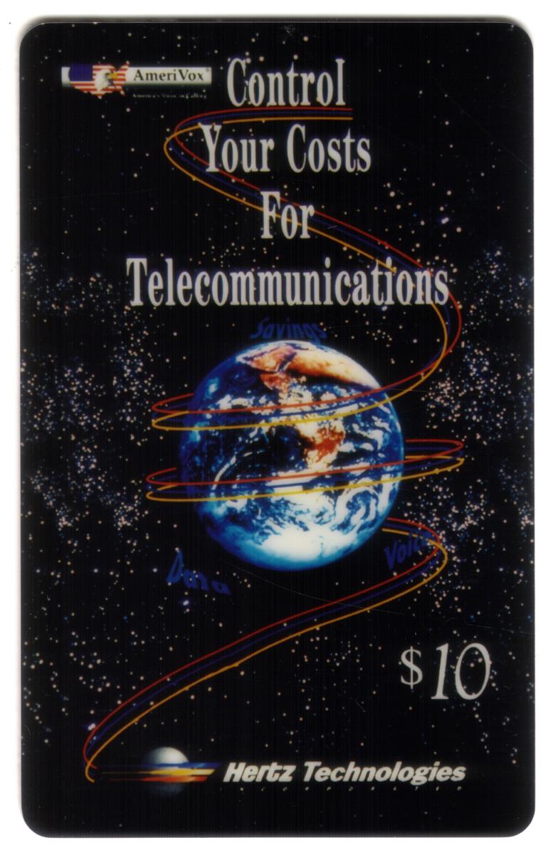 This card is dated September 28, 1994, indicated by the keywords but not printed on the card face, representing a collectible telecommunications phone card issued by AmeriVox and Hertz Technologies.