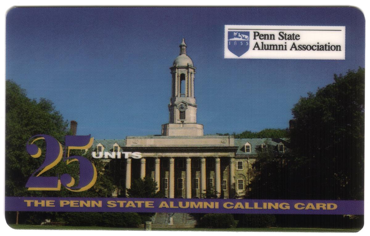 The card includes text identifying it as a promotional item linked to the Penn State Alumni Association. The AT&T logo appears in the lower corner, signifying the telecommunications provider associated with this phone card. The card’s value is marked as "25u," indicating its usage or credit amount.