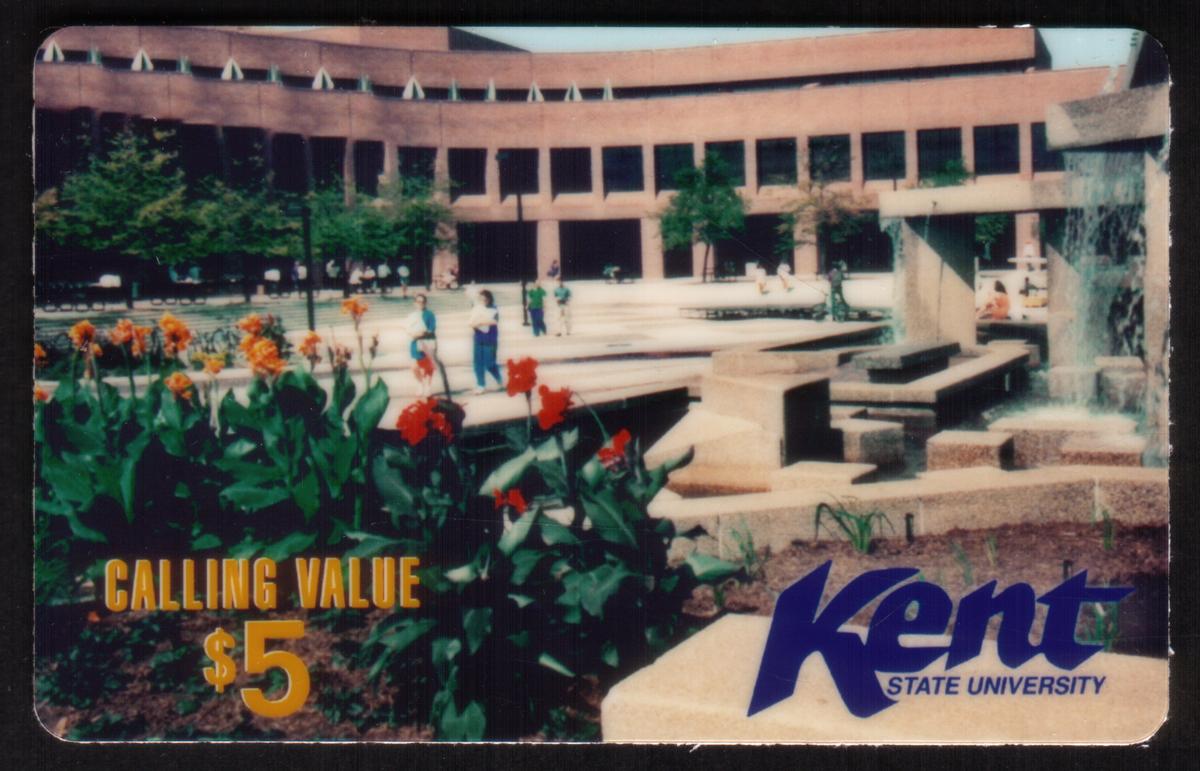 This card is a specimen collectible issued by ASC Telecom, commemorating Kent State University and its campus. It serves as a user card for phone services, with a clear connection to the institute of learning.