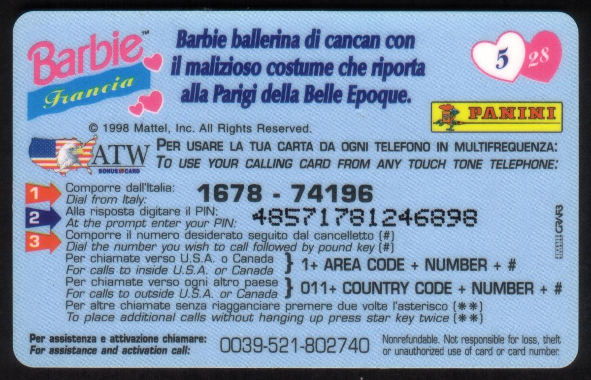 Since we have the world's largest inventory of USA phonecards for collectors, you will not necessarily receive the identical serial/batch/PIN number that we have scanned/pictured.