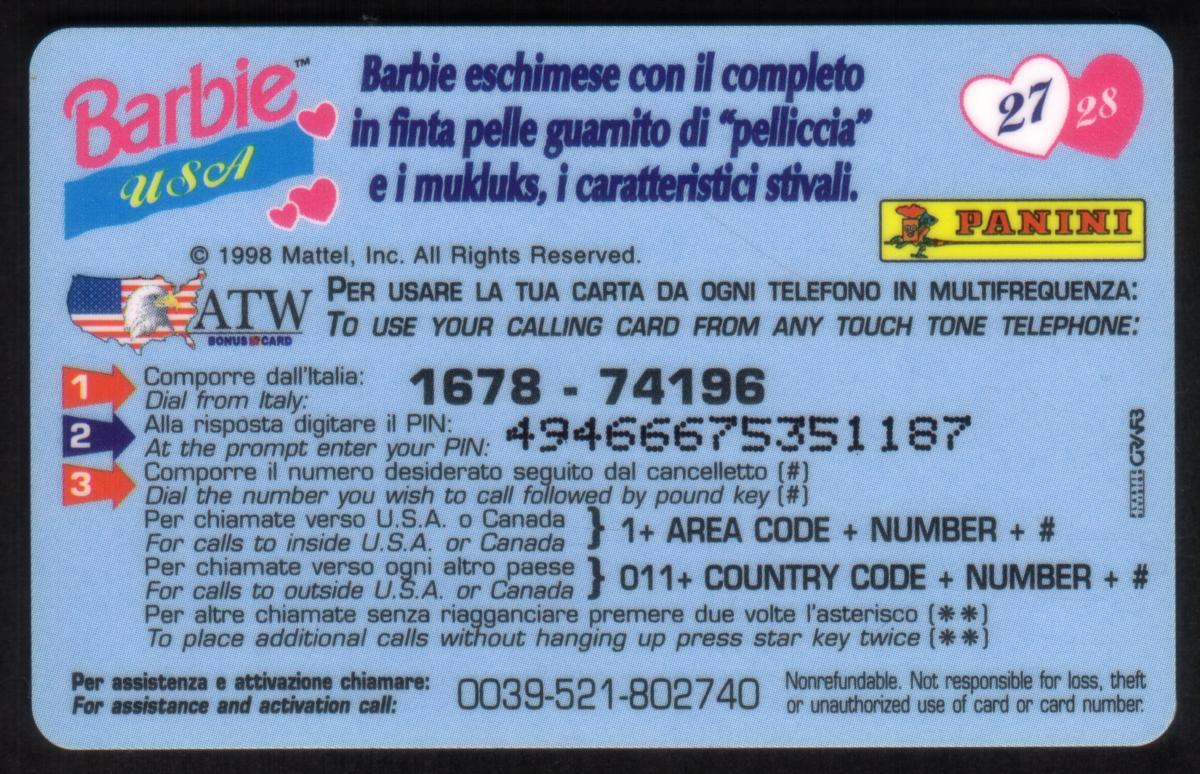 Since we have the world's largest inventory of USA phonecards for collectors, you will not necessarily receive the identical serial/batch/PIN number that we have scanned/pictured.