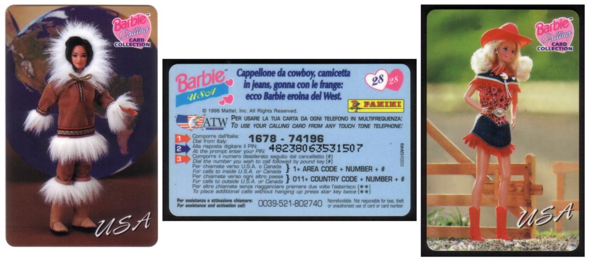 Overall, this phone card combines the popular Barbie brand with collectible international costumes, making it a notable item for collectors interested in global culture and Barbie memorabilia linked with telecom usage in Italy.