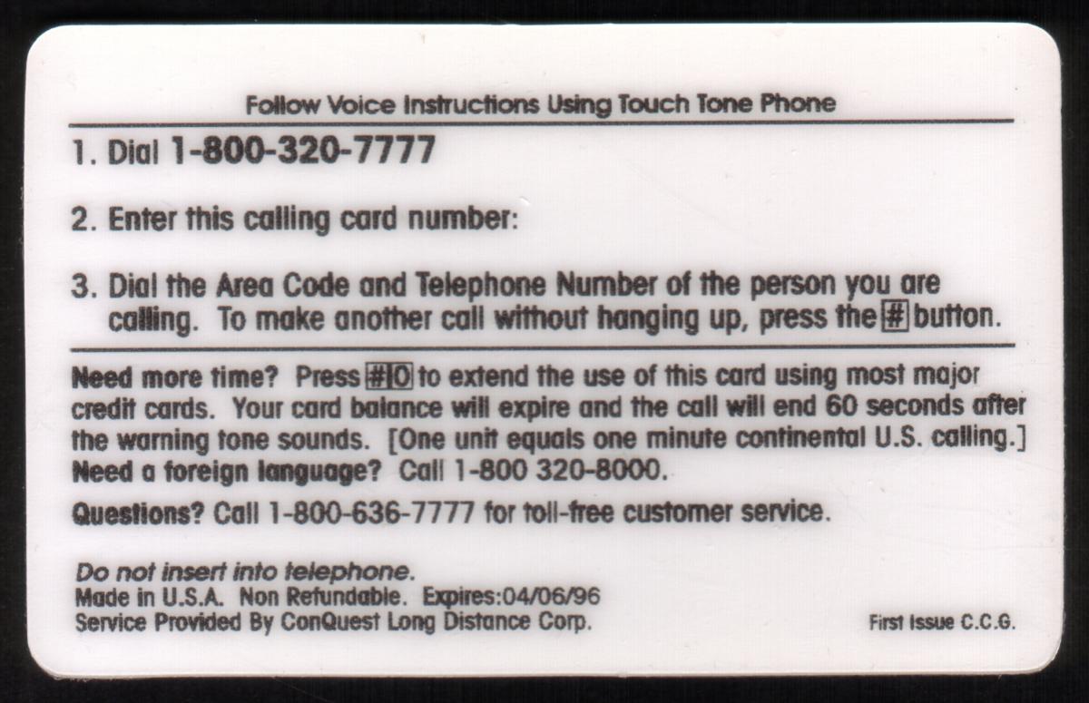 Since we have the world's largest inventory of USA phonecards for collectors, you will not necessarily receive the identical serial/batch/PIN number that we have scanned/pictured.