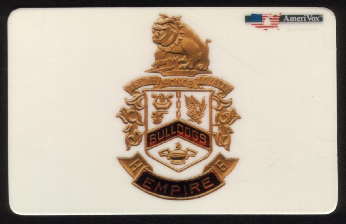 This card celebrates the values of truth, honor, and loyalty connected to Empire Public Schools and Empire High School. It serves as an emblematic collectible item symbolizing school spirit with the insignia of the Empire High School Bulldogs in Duncan, Oklahoma.