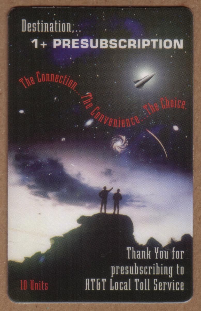 Keywords: Promotional, destination, the connection, the convenience, the choice, at&t local toll service, spaceship, stars, galaxies, expiration June 1997, technology, AT&T