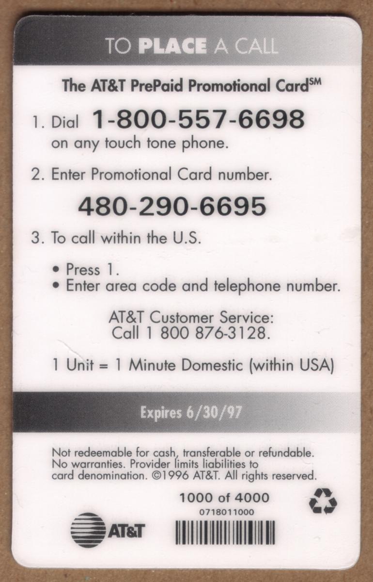 Since we have the world's largest inventory of USA phonecards for collectors, you will not necessarily receive the identical serial/batch/PIN number that we have scanned/pictured.