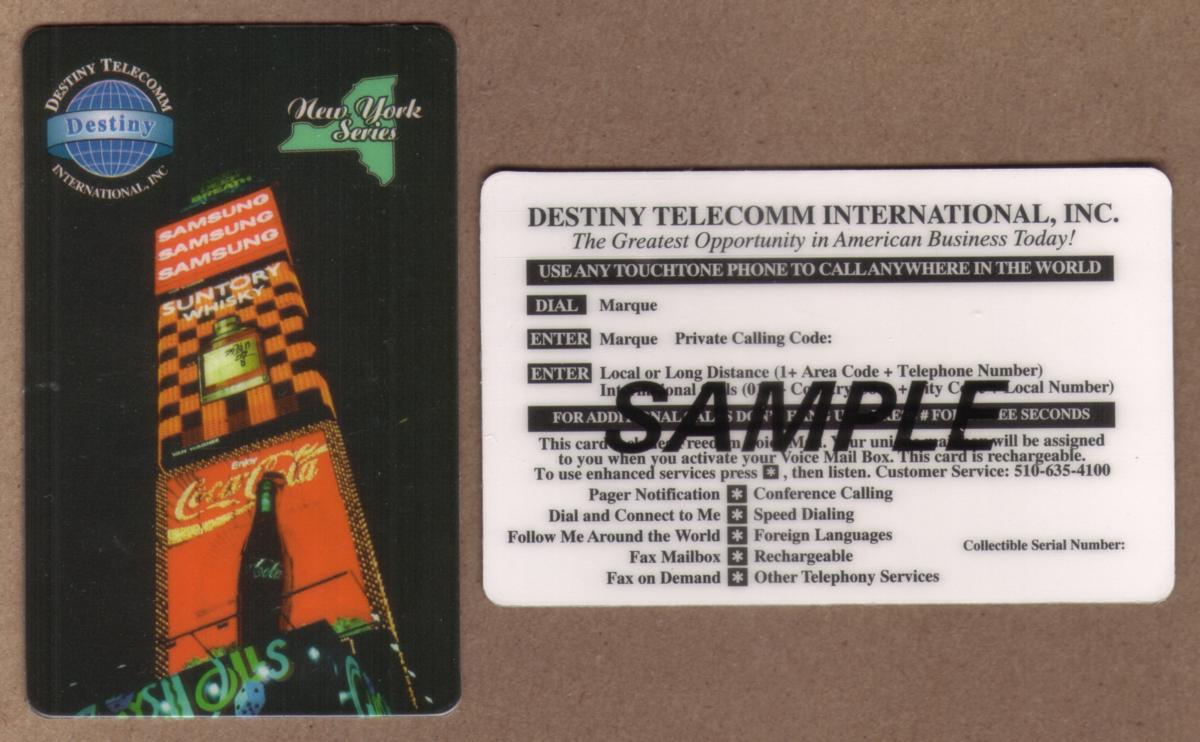 This phone card is part of the New York series and reflects a blend of cultural and commercial iconography tied to the city. The Samsung logo is present, indicating collaboration or sponsorship. The card serves as a collectible item emphasizing the unique vibrancy of Times Square combined with classic beverage branding.