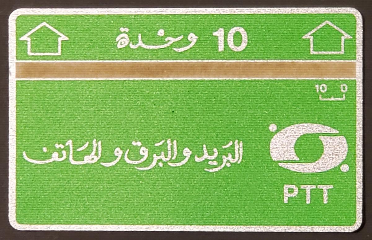The card’s visual theme uses a stylized green and silver color scheme, combining metallic and colored elements that highlight its optoelectronic technology. The card carries the official markings of Algeria, linking it to the national telecommunications authority. The presence of the Ministère des Postes et Télécommunications confirms its official use under the Algerian postal and telecommunications ministry.